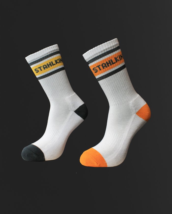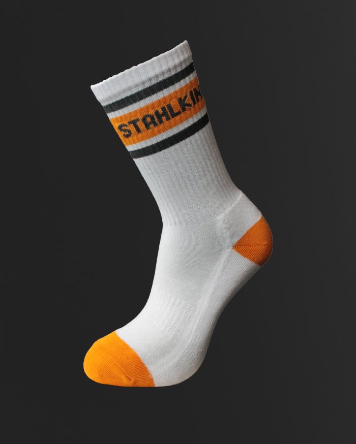 Tennissocken mit feschen Streifen als Variante in Orange und Gelb. In den Größen 37-41 und 42-46 erhältlich. Mit Innenfrottee. Materialzusammensetzung: 80 % Baumwolle, 17 % Polyamide, 3 % Elasthan. Mit Innenfrottee! Waschbarkeit bis 40 Grad. Nicht trocknergeeignet!