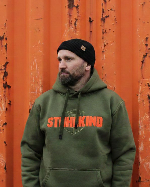Unser Hoodie in sattem Oliv ist die Antwort für alle, die ein zeitloses Basic mit dem gewissen Etwas suchen. Eine Farbe, so unkompliziert wie schwarz oder grau, aber mit deutlich mehr Charakter. Ob zur dunklen Jeans oder zur hellen Hose, dieser Ton passt immer. Mit hochwertigem Bruststick in leuchtendem Orange, für den energetischen Kontrast, der den Hoodie sofort vom Standard abhebt. Mit Premium-Stick auf Brust und Kapuze, Lederpatches an der Kapuzenkordel und Fähnchen an der Seitennaht. 400g/m² Stoffgewicht, 80% Baumwolle. Erhältlich in den Größen S bis 4XL. Pflegehinweise: Damit dein Hoodie lange hält, beachte diese einfachen Punkte: Einmal vor dem Tragen waschen (vermeidet Fusseln). Bei 30 Grad, auf Links, Feinwäsche waschen. Kein bis wenig Weichspüler. Kein Trockner.